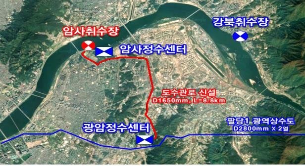 시는 "늘어나는 수돗물 수요에 대응하고 정수장별 재건설 사업을 추진하는 점을 고려해 광암센터에 고도정수처리시설 10만t 증설을 계획하고 있어 안정적 원수 공급이 필요한 상황"이라며 "자체 공급 관로가 만들어지면 팔당 광역 상수원은 비상시 사용하는 취수원 이중화가 가능해져 안정성을 확보할 수 있다"고 설명했다.