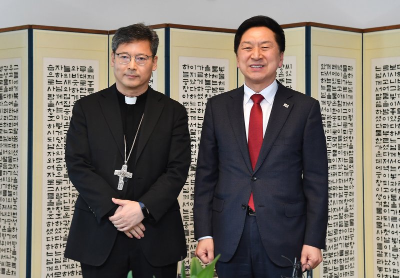 김 대표는 이날 오후 서울 중구 명동 천주교 서울대교구청에서 정순택 대주교를 만나 "모든 종교들이 그렇지만 특히 천주교는 어려운 이웃들에게 희망을 주고 빛이 돼주는 역할을 보여주셨다"며 "저희도 가야할 지향점, 가야할 좌표를 잃어버리면 안되기 때문에 어렵더라도 노력하겠다"고 했다.