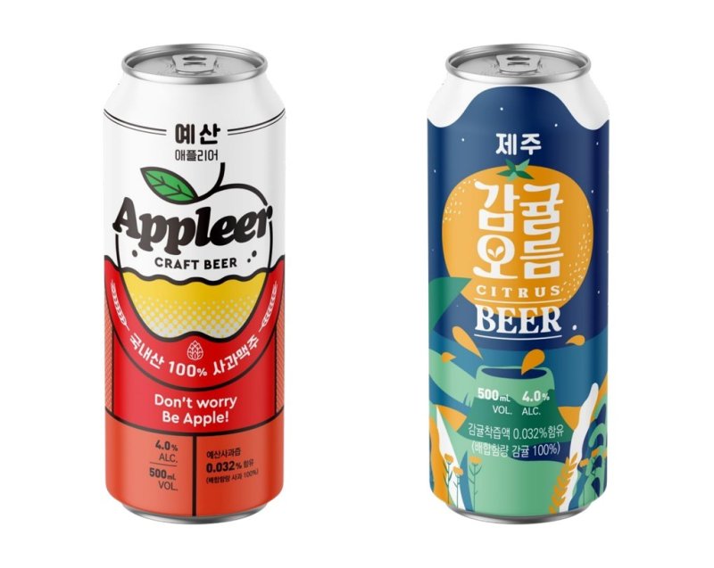 (서울=뉴스1) 서미선 기자 = CU는 백종원 더본코리아 대표와 함께 차별화 맥주로 충남 예산 사과를 활용한 '애플리어'와 제주 감귤을 넣은 '감귤오름' 2종을 출시했다고 19일 밝혔다.