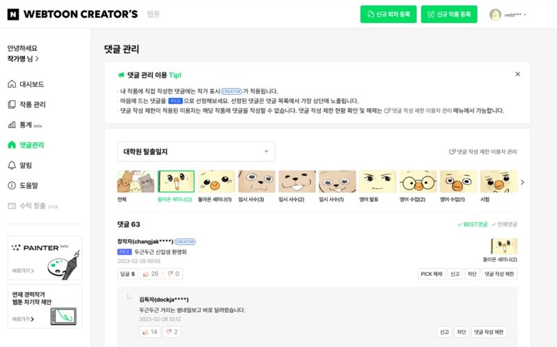 [파이낸셜뉴스] 네이버웹툰이 악성 댓글로부터 도전 및 베스트도전(베도) 창작자를 보호하고 독자와의 소통을 강화하기 위한 '댓글 관리' 기능을 새롭게 운영한다.