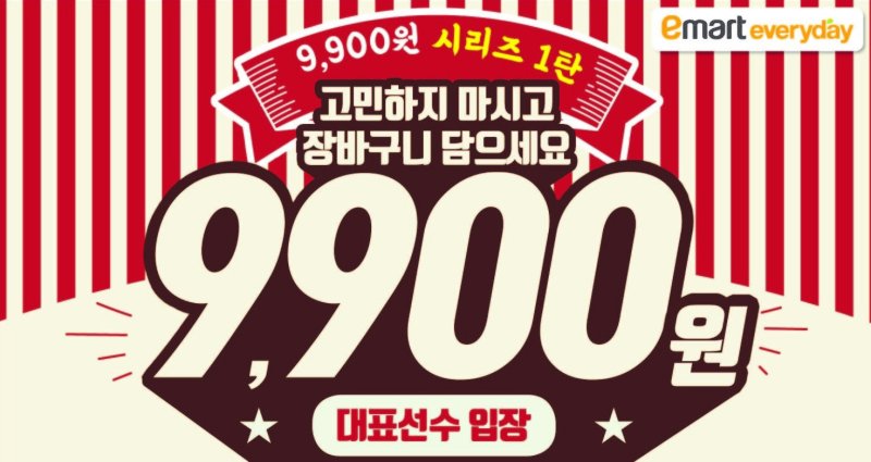 이마트에브리데이 'e마일' 앱 멤버십 회원이 9900원 균일가 상품을 2개 이상 구매하면 10% 추가 할인해준다. 앱 멤버십 신규가입 회원에겐 총 1만원 상당 쿠폰을 즉시 지급한다.