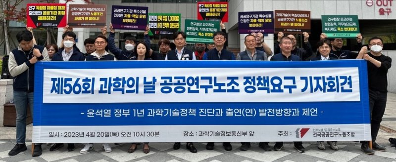 연구노조는 성명을 통해 "윤석열 정부는 출범 당시 '정치와 과학기술 정책을 원천 분리하고 지원하되 간섭하지 않는 연구 환경을 조성하겠다'고 약속했다"며 "그러나 지난 1년간 약속과 달리 공공기관 혁신가이드라인 등을 통해 연구 현장에 대한 정부의 간섭이 더욱 심해졌을 뿐"이라고 지적했다.