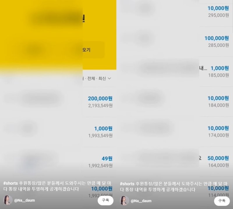 이후 지난 2일에는 약 220만원 가량의 후원금이 모인 통장 내역을 갈무리해 영상으로 올렸다. 해당 영상에는 수백개의 댓글이 달리며 네티즌들의 갑론을박이 이어졌다.