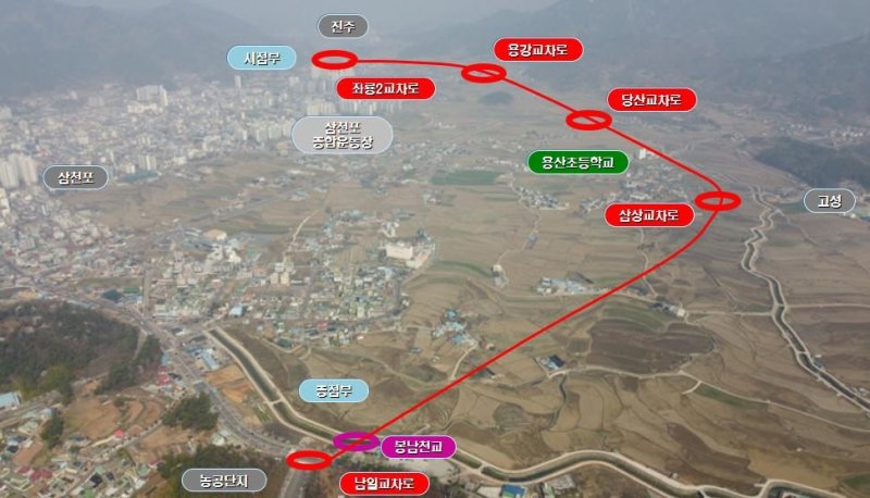우회도로는 삼천포도서관 뒤편에서 용강정수장을 거쳐 향촌동 삽재농공단지 입구까지 길이 4.3㎞, 폭 18m, 왕복 2차선 도로로 건설된다.