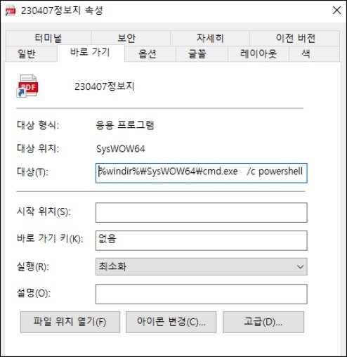 23일 국내 보안 기업 안랩에 따르면 APT37은 최근 윈도우 '바로가기 파일'(*.lnk)을 통해 록랫(RokRAT) 악성코드를 유포 중이다. 바로가기 파일을 통해 PDF 등 문서로 위장해 악성코드를 심는 방식이다.