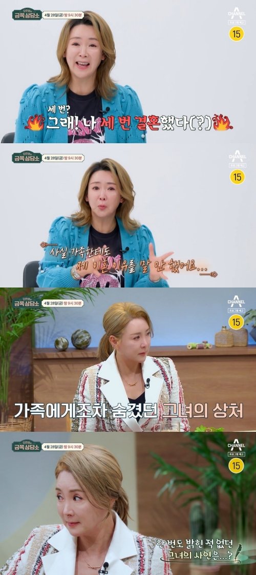 이상아는 지난 21일 채널A 예능물 '금쪽상담소' 예고편에 출연해 "동생에게 갑자기 카톡이 왔다. '작작해라. 3번을 생각하고 얘기해'라고 하는데 '그래! 나 세 번 결혼했어'라고 이야기한다. 그런데 세 번 생각하면 뭐가 다른가요?"라고 제작진을 향해 질문했다.