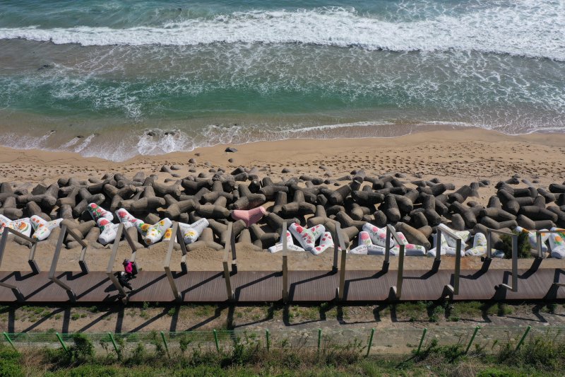 (동해=뉴스1) 윤왕근 기자 = 강원 동해시가 한섬해변 내 테트라포트 구간에 바닷가 꽃밭을 연상시키는 예술작품을 마련해 눈길을 끈다.