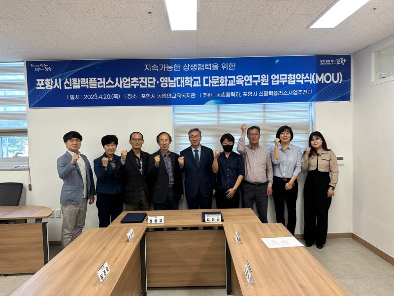 이번 협약은 올해 1월 영남대 사회학과(지도교수 정용교) 대학원생 30여 명이 인구 절벽과 지방소멸 위기의 대안을 농촌 마을에서 찾기 위해 포항시 ㈜봉좌마을(북구 기계면)과 포항시 신활력추진단을 방문하면서 성사됐다.