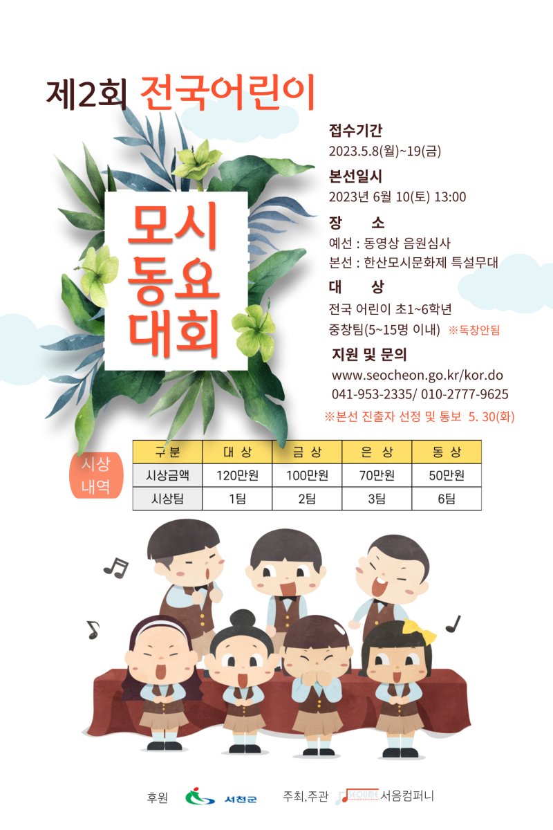 전국어린이 모시 동요대회 5월 8일~19일 접수