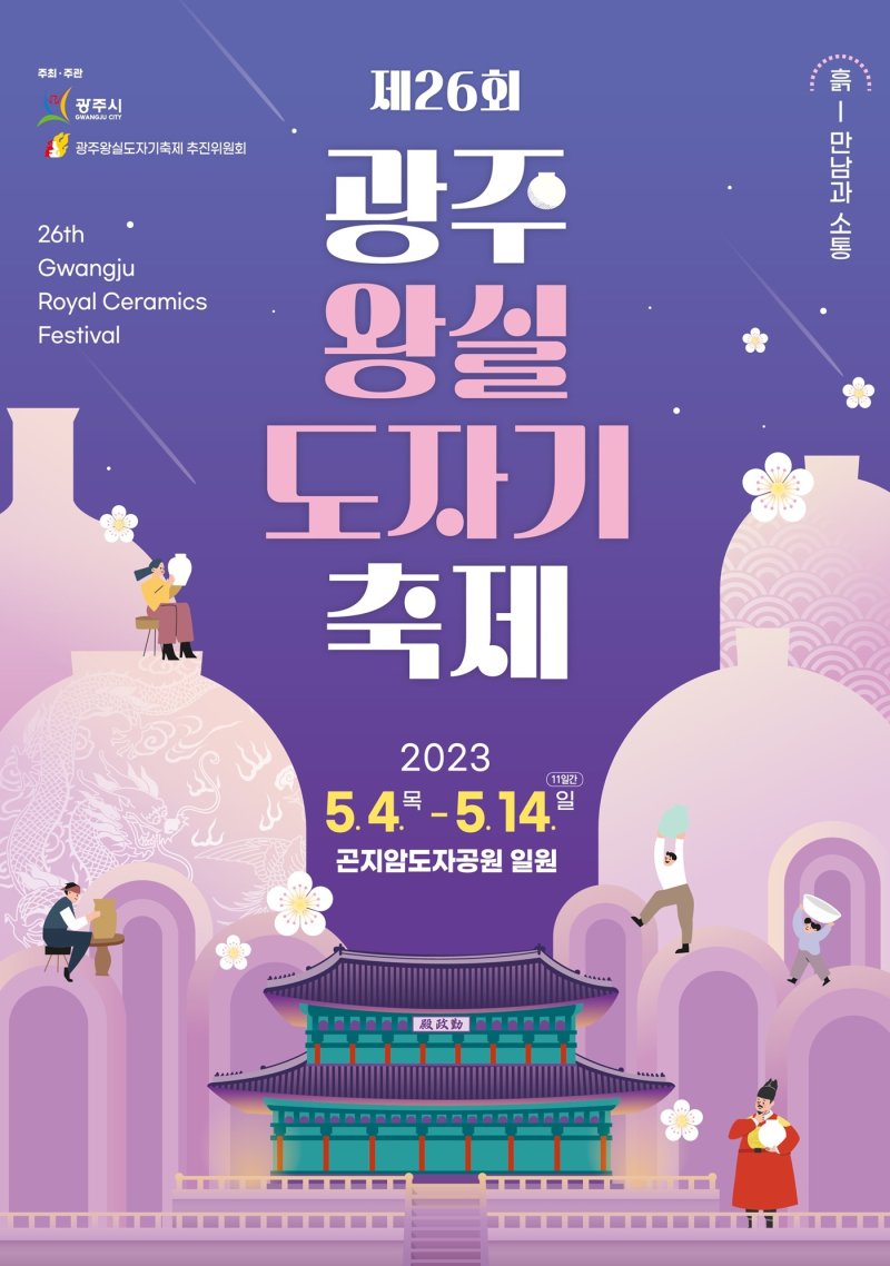 올해로 26회째를 맞는 광주왕실도자기축제는 ‘흙, 만남과 소통’이라는 주제로 광주 도예명장전과 중국도자교류전 등 전시행사와 관객이 직접 참여하는 도자 체험 프로그램, 문화공연 등으로 진행된다.