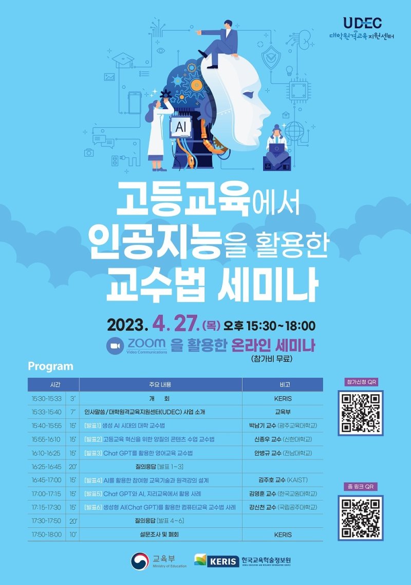 (서울=뉴스1) 서한샘 기자 = 한국교육학술정보원(KERIS)은 27일 국내 대학 교수자들의 인공지능(AI) 활용 역량을 제고하기 위한 '고등교육에서 AI를 활용한 교수법 세미나'를 개최한다.