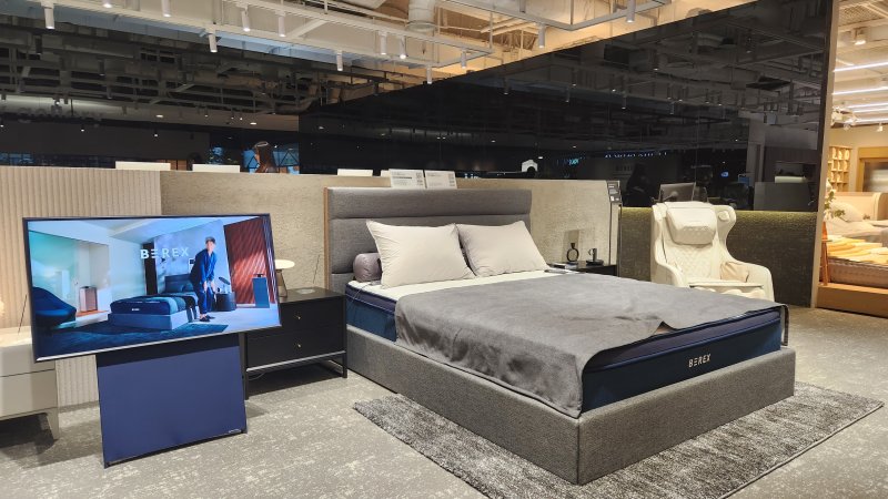 '비렉스' 공간엔 매트리스, 안마의자 등이 마련돼 있다. 안마의자는 시그니처와 마인 2종류가 마련돼 있다. 시그니처의 경우 발 마사지 기능 등 세분화된 안마 서비스, 마인은 1인 가구도 부담 없이 들여놓을 수 있도록 부피 최소화에 초점을 맞춘 제품이다.