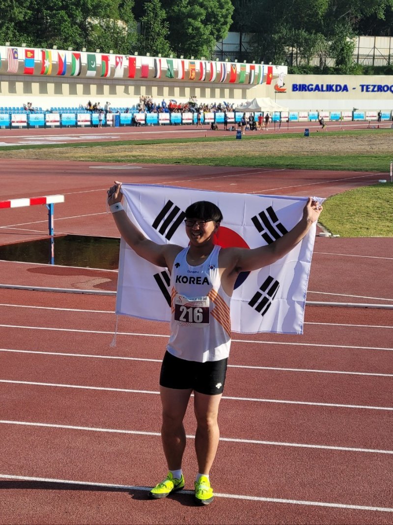 그는 지난해 5월 열린 국내 대회 4㎏ 포환던지기에서 21m56을 기록, 이민원이 1999년에 세운 중등부 한국기록(20m54)도 1m 이상 넘어서며 주목을 받았다.