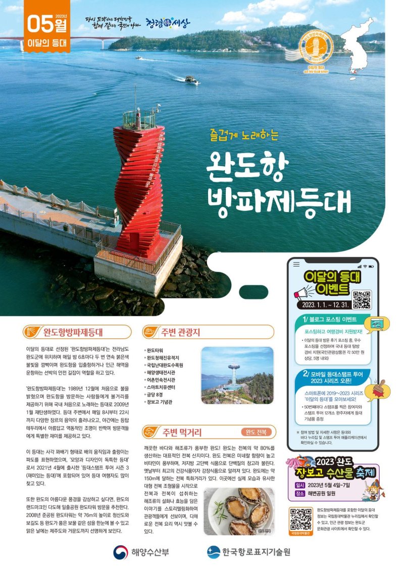 [서울=뉴시스] 박성환 기자 = 해양수산부(장관 조승환)는 5월 등대로 전라남도 완도군에 위치한 '완도항 방파제등대'를 선정했다고 30일 밝혔다.