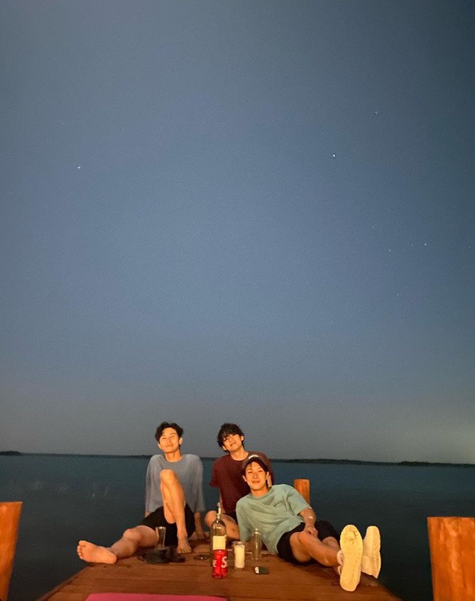 평소 사적으로 친한 것으로 알려진 세 사람은 배우 정유미, 이서진과 함께 tvN '서진이네'에 함께 출연했다. 해당 사진은 '서진이네'를 촬영한 멕시코 앞 바다로, 정유미가 촬영한 것으로 보인다.