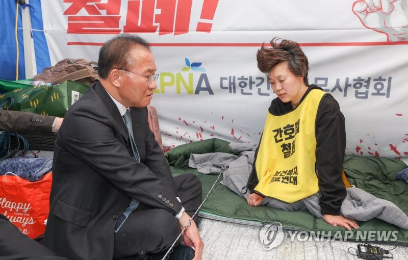 곽 회장은 "간호조무사들이 간호 인력으로 당당하게 인정받을 수 있게 해달라"며 "간호법이 해결되지 않으면 단식을 중단하지 않겠다"고 말했다.