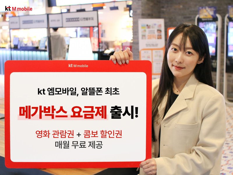 [서울=뉴시스] 심지혜 기자 = 알뜰폰 KT엠모바일은 매월 영화관람 혜택이 제공되는 메가박스 요금제 3종을 출시다고 2일 밝혔다.