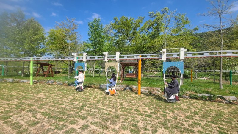 자전거의 동력에너지가 전기에너지로 바뀌면서 작동하는 ‘현수식 모노레일’, ‘회전시소’, ‘수평시소’, ‘회전놀이대’ 등 자가발전 놀이시설과 트리하우스, 그네의자 등 편의시설이 설치됐다.