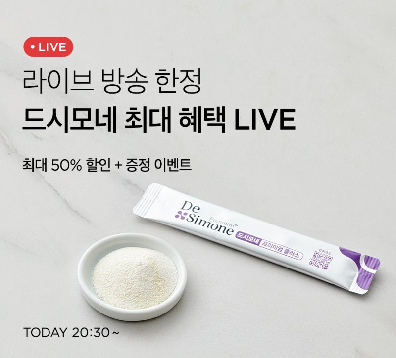 (서울=뉴스1) 한지명 기자 = 컬리는 3일 오후 8시30분부터 1시간 동안 '마켓컬리 드시모네 라이브 방송'을 진행한다고 밝혔다. 프리미엄 프로바이오틱스 드시모네 제품 9종을 최대 50% 할인한다.