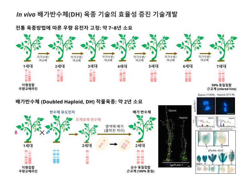 이어 "벼에서도 반수체 유도 기능을 확인해 국내·국제 특허화도 진행 중이다"며 "다양한 작물에서도 반수체 유도 기술을 적용하면 효율적인 신품종 개발에 기여할 수 있을 것으로 기대된다"고 밝혔다.
