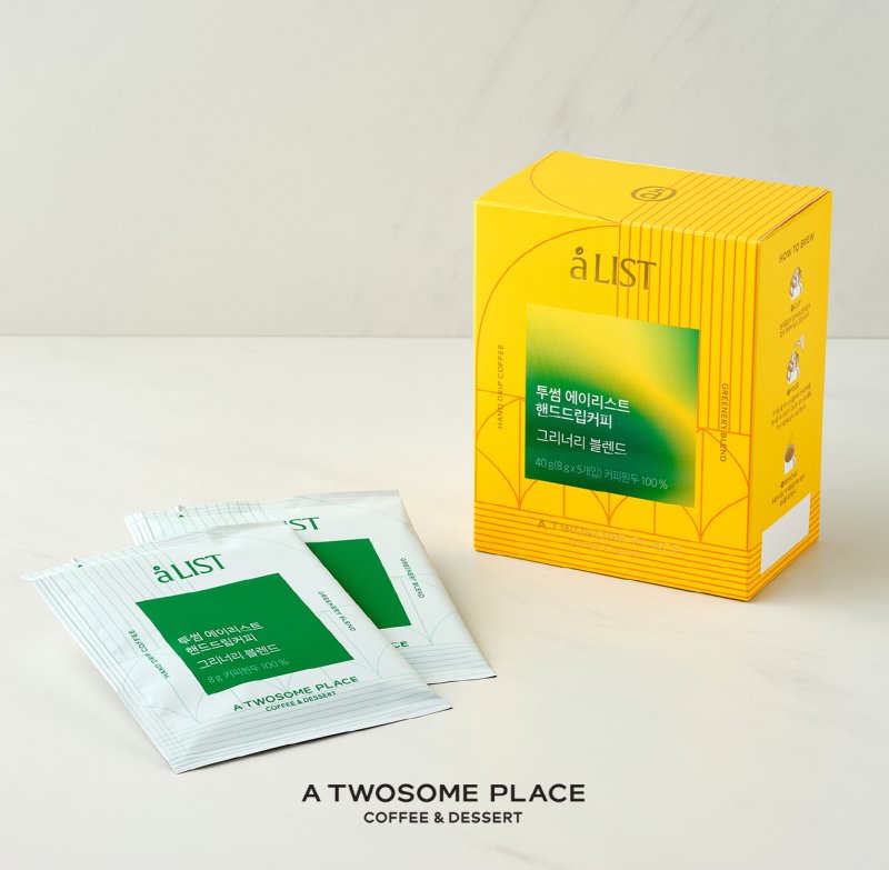 이번에 선보이는 투썸 에이리스트(aLIST) 핸드드립커피 그리너리 블렌드는 파푸아뉴기니 울리아와 과테말라 안티구아 원두를 최적의 비율로 블렌딩 했다. 은은하게 풍기는 산뜻한 청사과 향, 고소한 견과류의 풍미에 브라운 슈가의 단맛이 어우러져 뛰어난 균형감을 자랑한다.