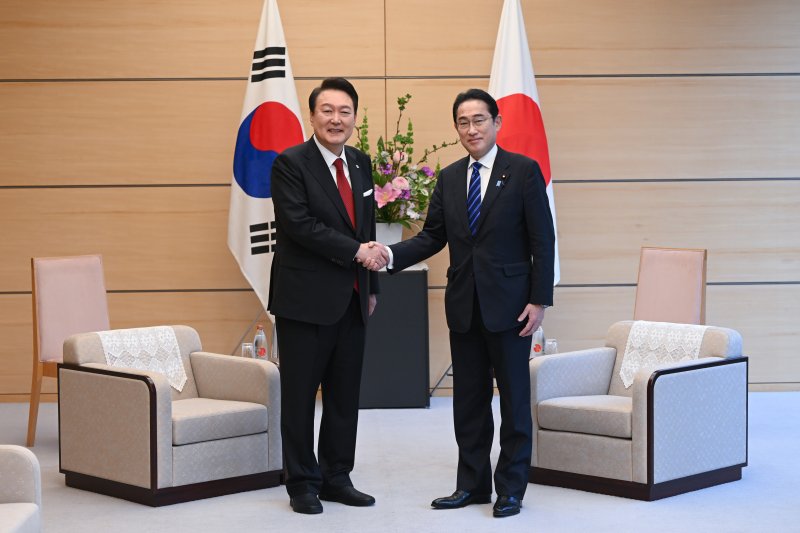 윤 대통령이 지난 3월 16∼17일 실무 방문 형식으로 일본 도쿄를 찾은 데 대한 답방 차원으로 두 정상은 52일 만에 다시 마주앉게 됐다.