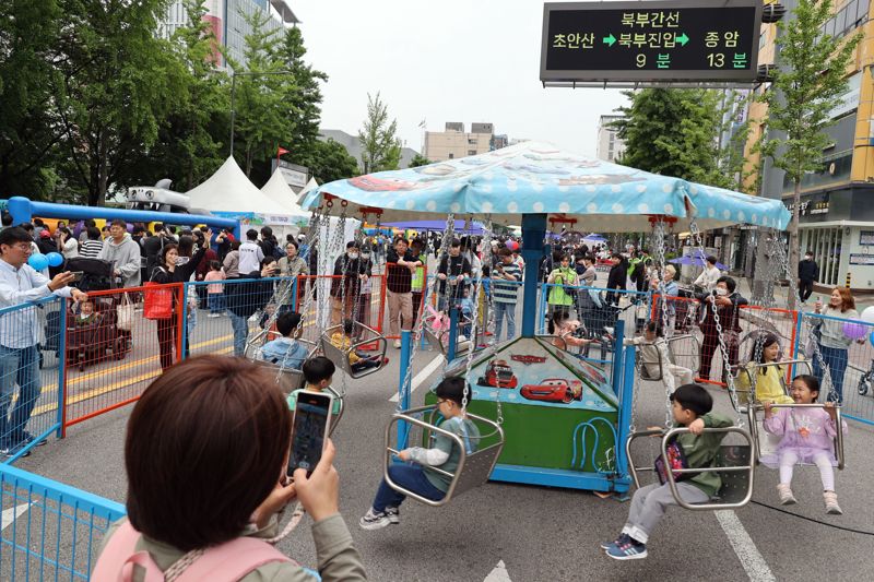 2023 노원구 어린이날 축제 ‘함께해요 노원 네버랜드’가 7일 서울 노원구 노해로 일대에서 열려 행사장을 찾은 어린이들이 즐거운 하루를 보내고 있다. 사진=서동일 기자