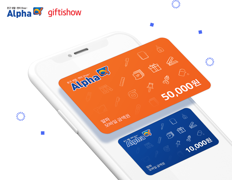 모바일 상품권은 현금처럼 자유롭게 이용할 수 있는 금액권 총 6종(3000원권, 5000원권, 1만원권, 3만원권, 5만원권, 10만원권)으로 출시되며, 전국 알파 매장 및 알파몰에서 사용할 수 있다. 바코드 스캔 및 쿠폰번호 입력만으로 상품을 간편하게 구매할 수 있으며 금액 내 분할 사용도 가능하다.