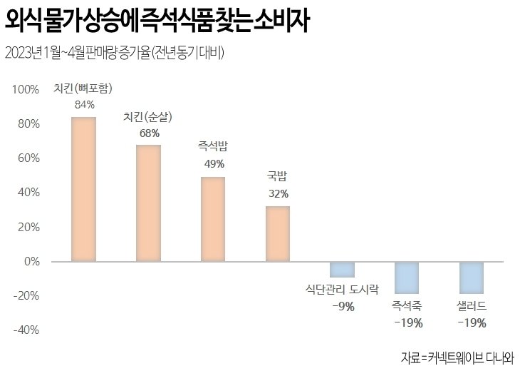 즉석밥은 전년 동기 대비 49%, 덮밥류와 비빔밥류 가공식품은 각각 53%와 70% 늘었다.