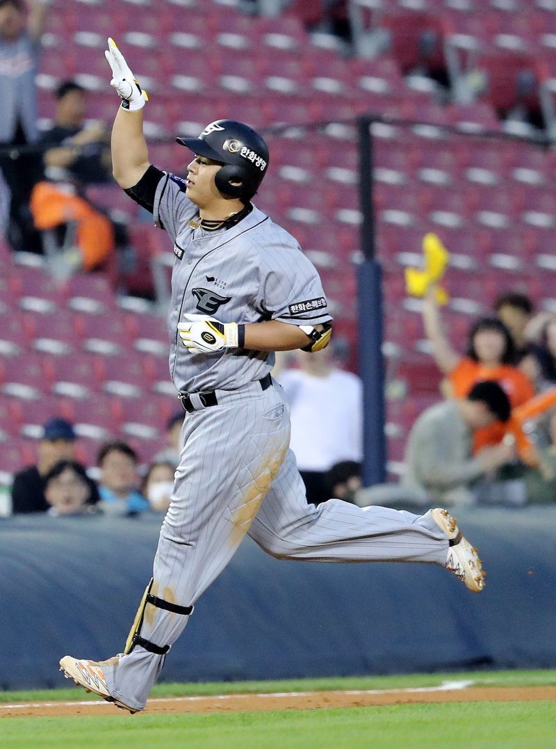 0-0으로 맞선 4회말 무사 1루에서 2번째 타석에 선 노시환은 원태인의 체인지업을 때려 좌월 투런포를 터트렸다. 노시환이 올 시즌 안방에서 기록한 첫 홈런이었다.