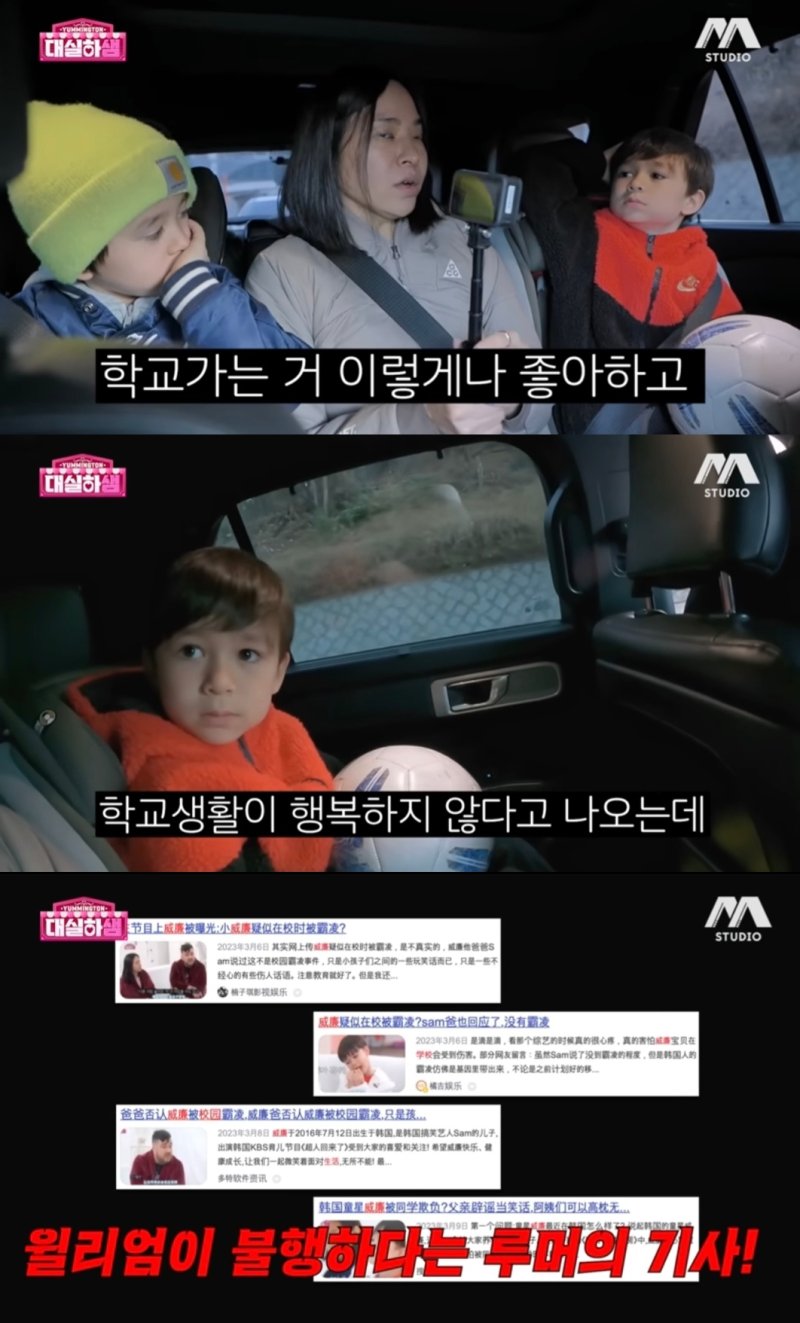 그러자 정유미는 "우리 학교가는거 이렇게나 좋아하고 아침 일찍 가서 놀고 들어가는데 다른 나라 어느 잡지에 윌리엄이 학교생활이 행복하지 않다고 나온 것 같은데 맞냐"고 했다. 정유미는 윌리엄의 학교생활이 불행하다는 내용이 담긴 해외 뉴스에 황당함을 드러냈다. 윌리엄은 친구가 많다고 말했고, 학교에 도착해 친구들과 축구를 하는 모습을 보여줬다. 아울러 "학교가 싫냐, 좋냐"는 샘 해밍턴의 질문에 윌리엄은 "좋다"고 했다.