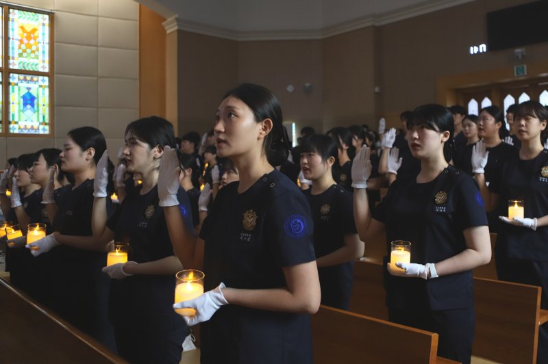 나이팅게일 선서식은 나이팅게일의 숭고한 간호정신을 계승하고 전문간호인으로서의 책임과 소명을 다짐하는 행사다. 이날 73명의 예비간호사가 촛불 의식과 함께 나이팅게일 선서문을 낭독했다.