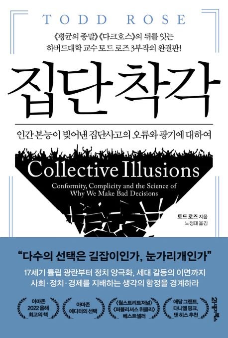 그런 집단 지성이 왜 집단 무지성으로 전락할까? 토드 로즈 하버드대 교육대학원 교수는 책 '집단 착각'(21세기북스)에서 이 질문에 대해 바로 인간 본능 때문이라고 답한다. 즉, 인류는 집단에 영향받는 사회적 동물이기에 집단의 선택이나 가치관에 대해 무비판적으로 믿고 따르는 경향이 있기 때문이다.