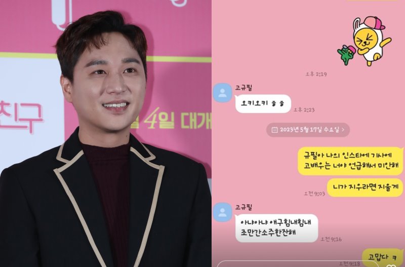 배우 고규필과 나눈 카카오톡 메시지 내용도 공개했다. 허정민은 이날 고규필에게 "규필아. 나의 인스타에 기사에 고배우는 너야. 언급해서 미안해. 네가 지우라면 지울게"라는 메시지를 보냈다. 이에 고규필은 "아냐 아냐. 에고 힘내. 힘내. 조만간 소주 한 잔 해"라고 답했고 허정민은 "고맙다"고 했다.