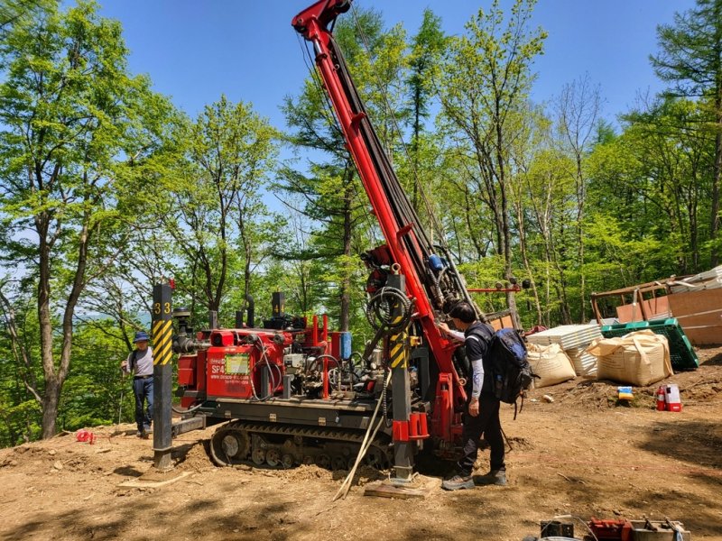 탐사 성공률을 높이기 위해 국내 최초로 헬기를 이용해 시추장비를 산악지대로 이동·설치했다.
