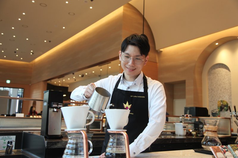 장 바리스타는 2만3000여 명의 스타벅스 파트너 중 예선과 본선을 거쳐 최종 우승자로 선발됐다. 최종 커피대사 선발대회에서 커피 지식 테스트, 커피를 주제로 한 전문강연, 커피 스토리텔링 등 다양한 분야의 경합을 거쳤다. 스타벅스 최고의 커피 전문가인 셈이다.