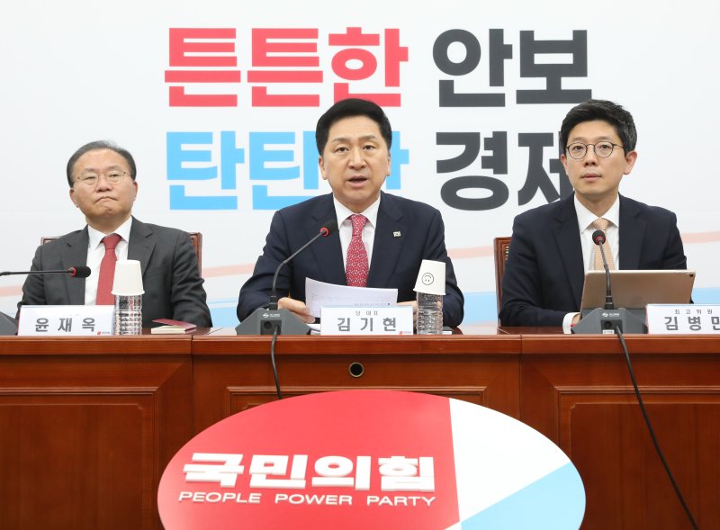 윤재옥 원내대표는 이날 국회에서 열린 최고위원회의에서 "지금 민주당이 할 일은 대국민 선전·선동이 아니라 코인 게이트 진상규명에 협조하고 신속히 김 의원에게 합당한 징계를 내리는 것"이라며 "여론에 등 떠밀려 늦장 제소해 놓고 검경 수사결과를 지켜보자하면서 시간만 끌고 있다"고 밝혔다.