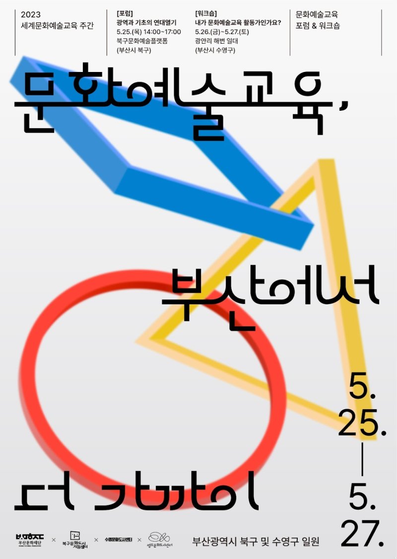 25일에는 ‘광역과 기초의 연대열기’라는 주제로 1부 '부산 문화예술교육, 기초와 광역 협력의 중요성'과 2부 '부산에서 문화예술교육과 가까워지는 방법' 등 포럼이 진행된다.