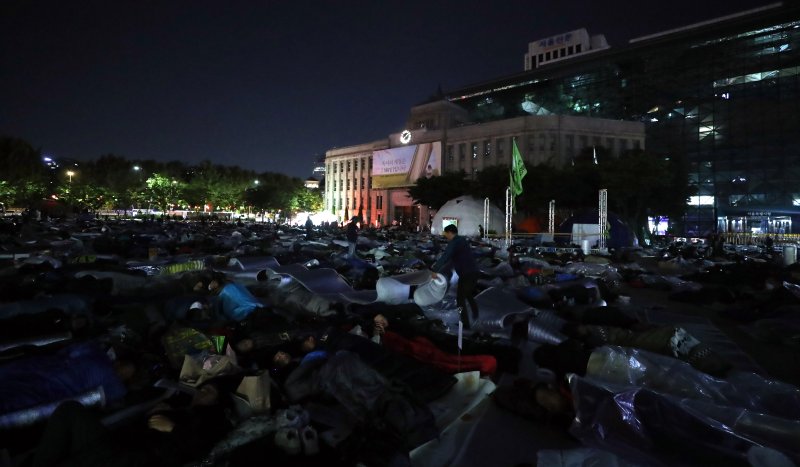 앞서 16, 17일 민주노총 건설노조는 총파업 결의대회를 열며 노숙집회를 열었다. 노조원들은 최근 분신해 숨진 노조 간부 고(故) 양회동씨를 추모하며 윤석열 정부에 강압 수사를 중단하라고 촉구했고, 경찰이 집회를 금지한 16일 오후 5시 이후에는 다른 단체가 주최한 '이태원 참사 추모 문화제'에 참여하는 식으로 야간 집단행동을 이어갔다. 1만4,000여 명이 서울광장과 청계광장 일대에 모여 돗자리 등을 깔고 노숙했고, 이튿날엔 서울지방고용청 앞 8차로를 모두 점거했다.