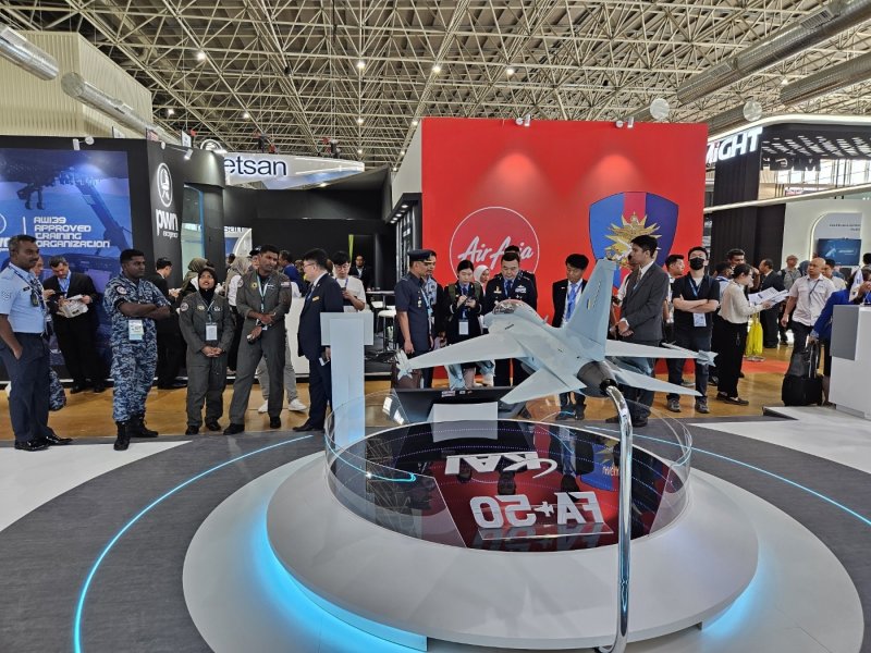 한국항공우주산업(KAI)은 이번 전시회에서 말레이시아 공군이 운용할 FA-50M과 글로벌 시장에 관심이 높은 KF-21, 수리온, LAH 등 주력 제품군 모형을 전시했다. 가장 정면에 전시된 경전투기 FA-50 모형 앞에선 '인증샷'을 찍기 위한 관람객들이 줄을 섰다.