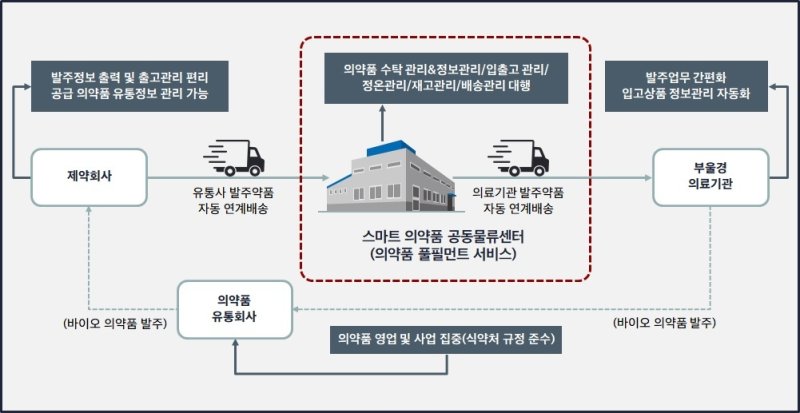 현재 의약품 공급시장은 공급금액 상위 5%에 해당하는 업체들이 전체 시장의 72%를 차지하고 있고 기타 대부분이 영세한 수준이라 김해스마트의약품 공동물류센터는 자체 보관 창고가 없는 의약품 도매업체에게 큰 도움이 될 전망이다.