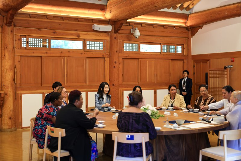 대통령실에 따르면 김 여사는 이날 오전 한-태도국 정상회의 참석을 위해 한국을 방문한 태도국 정상 및 태평양도서국포럼(PIF) 사무총장 배우자들을 서울 국립중앙박물관과 진관사로 초청했다.