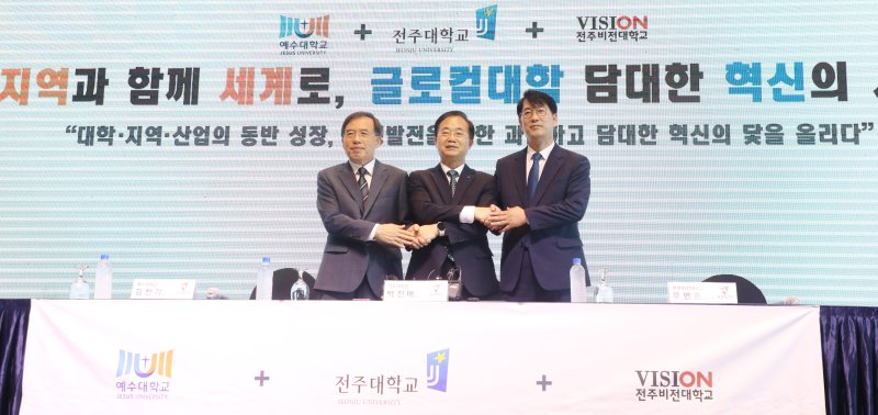 전주대와 예수대, 비전대는 30일 전주그랜드힐스턴호텔에서 공동 기자회견을 갖고 “3개 대학이 교육부 글로컬대학30 사업을 공동 신청했다. 우리 3개 대학은 앞으로 담대한 혁신으로 지속가능한 명품 글로컬대학의 여정을 함께할 것”이라고 밝혔다.