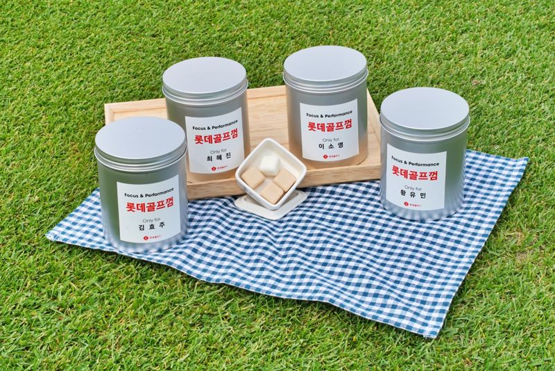 롯데웰푸드와 롯데중앙연구소는 ‘KLPGA 2023 롯데오픈’ 대회를 앞두고 롯데 골프단 선수들의 우수한 성적을 기원하며 맞춤형으로 특별 제작한 선수용 롯데골프껌을 제공했다. 이번에 껌을 전달받은 선수는 김효주, 이소영, 최혜진, 황유민 총 4명이다.