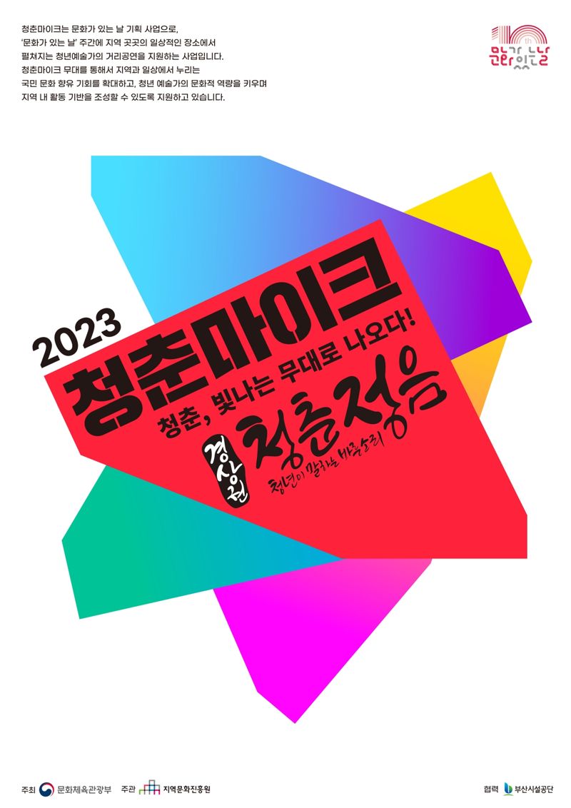 청춘마이크는 재능있는 지역 청년 예술가에게 공연 기회를 마련하고 시민들에게는 문화 향유의 기회를 제공하기 위한 공연이다. 지역의 특색있는 명소를 발굴해 청년과 문화를 연계하는 것이 특징이다.