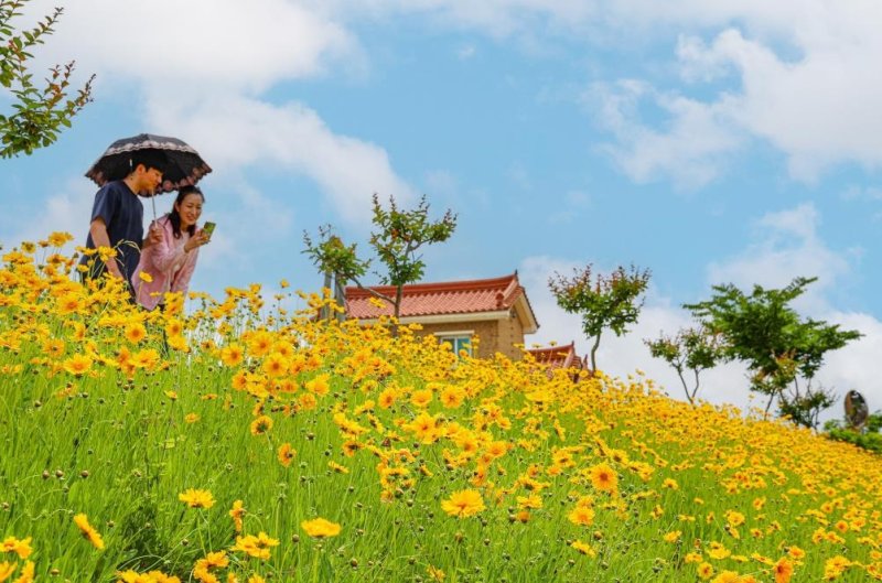'상쾌한 기분'이라는 꽃말을 가진 금계국은 8월까지 꽃을 피우는 대표적인 여름 들꽃이다.