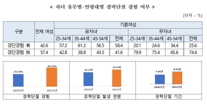 여성가족부, 2022년 경단녀 경제활동 실태조사 결과
