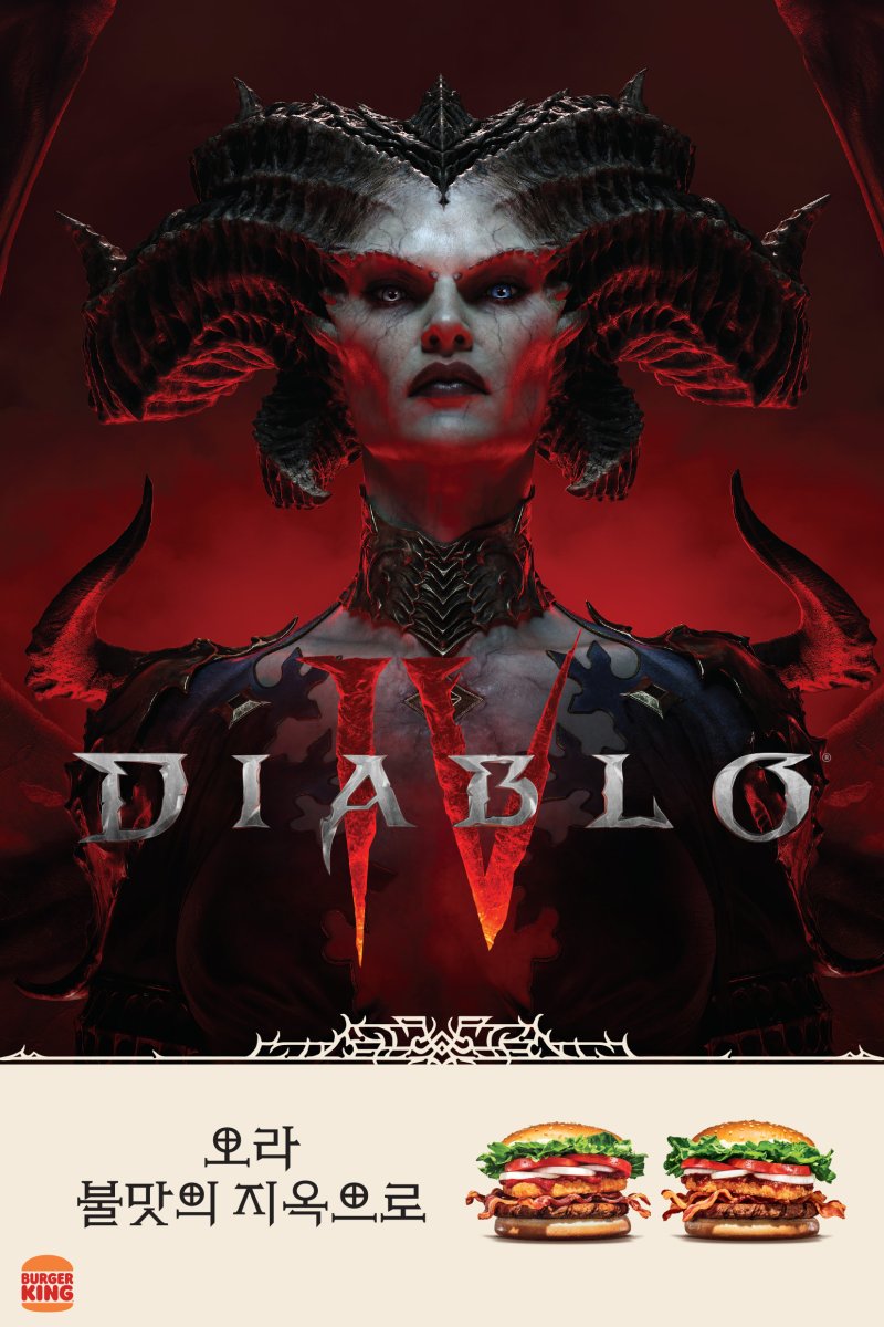 블리자드 엔터테인먼트는 디아블로 시리즈 차기작 디아블로4가 오는 6일 출시를 기념해 햄버거 브랜드 버거킹과 협업을 진행한다고 5일 밝혔다.