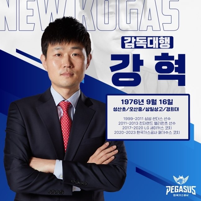 한국가스공사는 우선 강혁 코치를 감독 직무대행으로 앉혔는데, 이날 정식 감독대행으로 선임했다.