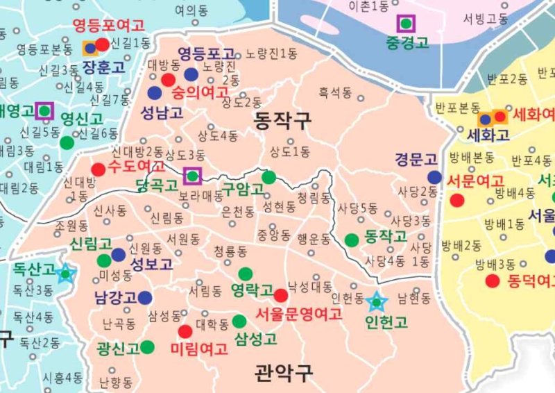 학교군 불균형 문제도 있다. 단일학교군인 동작구와 관악구는 학령인구가 각각 7800여명으로 비슷하지만 동작구 관내 고등학교는 6곳, 관악구는 그 2배 수준인 11곳이다.